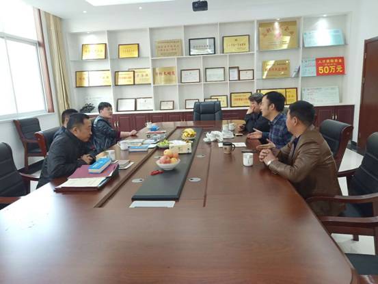 2019年3月31日,新疆東方希望詹總一行來公司進行參觀考察。公司高管吳健健、董原新、周乃飛共同接待了來訪客人,雙方就292*10000無堿玻纖濾袋的生產(chǎn)、技術(shù)、細節(jié)控制等方面進行了深入詳細地交談。